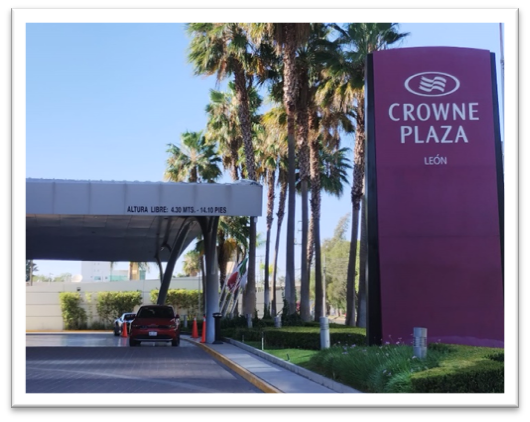 HOTEL CROWNE PLAZA LEÓN Manuel J. Clouthier 245, Colonia Jardines del Campestre, León Guanajuato. Estacionamiento, internet y vigilancia.